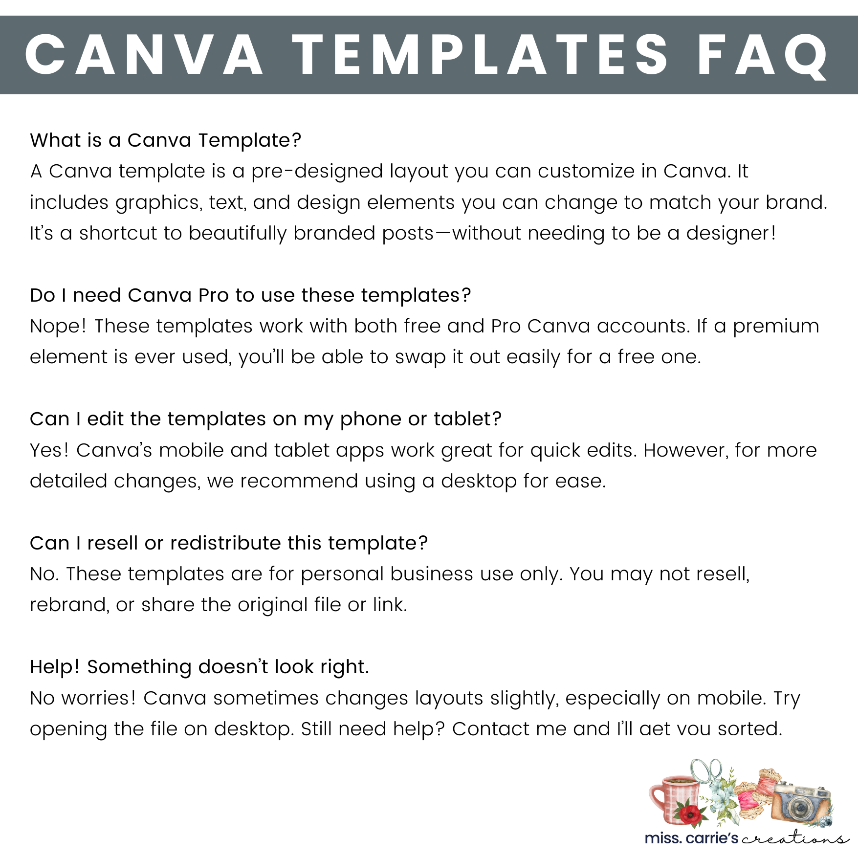 - 10 professionally designed Canva templates that are fully editable and designed for creatives to alter to fit their brand.