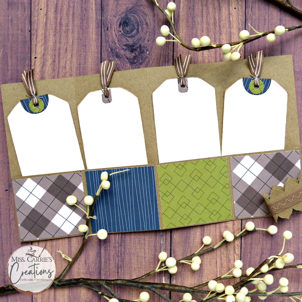 Fun Fold slimline card design with four pockets for gift cards. This can also be used as a mini-album or to hold small gifts or candy. This simple digital design is perfect for your paper crafting projects. A link to the instruction video is included.