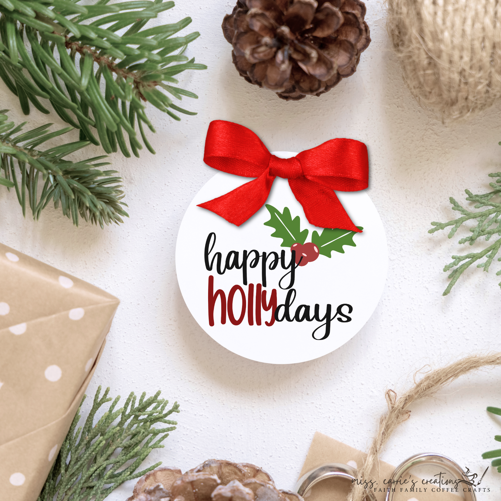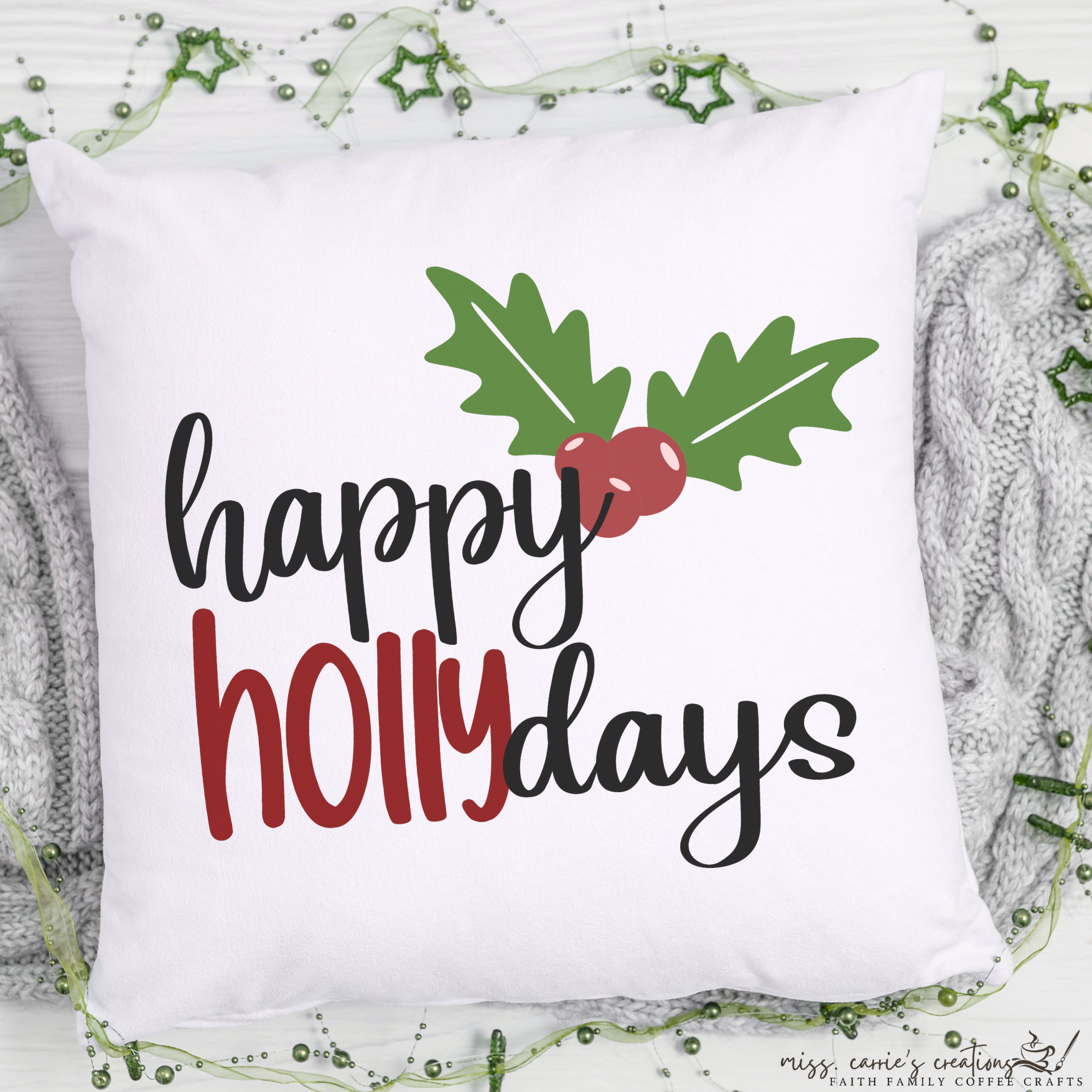 THE HAPPY HOLLY-DAYS ZIP FILE INCLUDES: SVG, PNG, JPG, DXF, PDF